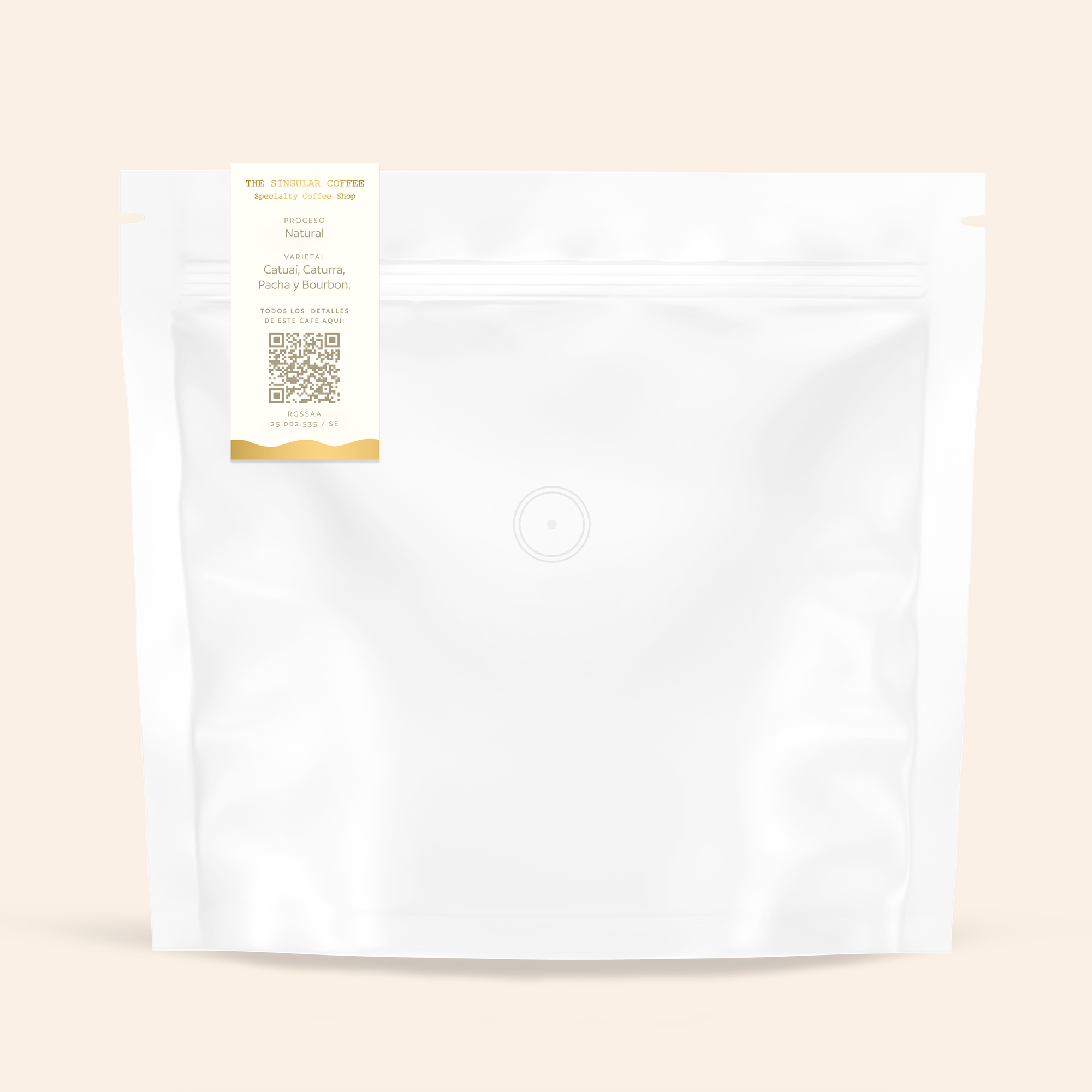 El café se elabora a través de un proceso natural, en el que éste se seca con la pulpa intacta al sol, permitiendo que los azúcares naturales de la fruta penetren en el grano. Esto genera un perfil muy afrutado, dulce y con cuerpo, perfecto para quienes buscan cafés expresivos y jugosos.